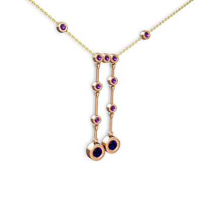 Lab safir ve ametist 925 ayar rose altın kaplama gümüş kolye (40 cm altın rolo zincir)