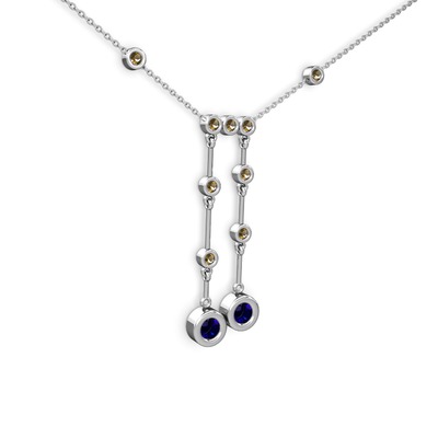 Lab safir ve dumanlı kuvars 14 ayar beyaz altın kolye (40 cm gümüş rolo zincir)
