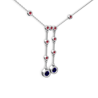 Lab safir ve kök yakut 925 ayar gümüş kolye (40 cm beyaz altın rolo zincir)