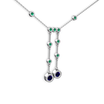Lab safir ve kök zümrüt 14 ayar beyaz altın kolye (40 cm beyaz altın rolo zincir)