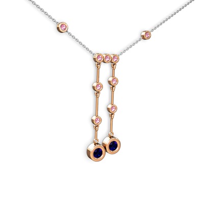 Lab safir ve pembe kuvars 18 ayar rose altın kolye (40 cm beyaz altın rolo zincir)