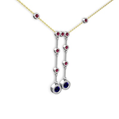 Lab safir ve rodolit garnet 8 ayar beyaz altın kolye (40 cm altın rolo zincir)