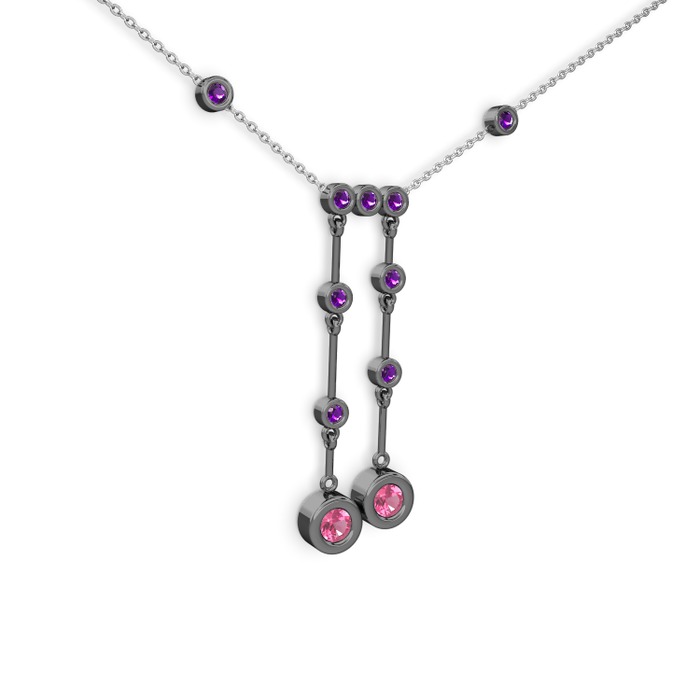 Pembe kuvars ve ametist 925 ayar siyah rodyum kaplama gümüş kolye (40 cm beyaz altın rolo zincir)