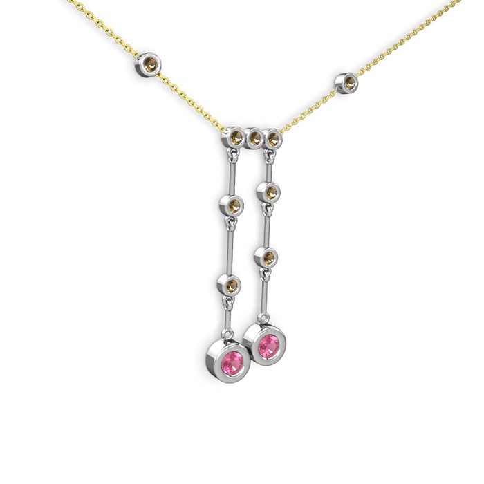 Pembe kuvars ve dumanlı kuvars 925 ayar gümüş kolye (40 cm altın rolo zincir)