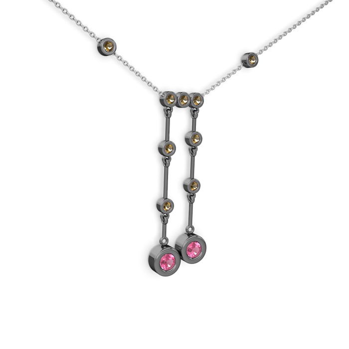 Pembe kuvars ve dumanlı kuvars 925 ayar siyah rodyum kaplama gümüş kolye (40 cm beyaz altın rolo zincir)