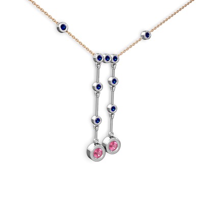 Pembe kuvars ve lab safir 925 ayar gümüş kolye (40 cm gümüş rolo zincir)