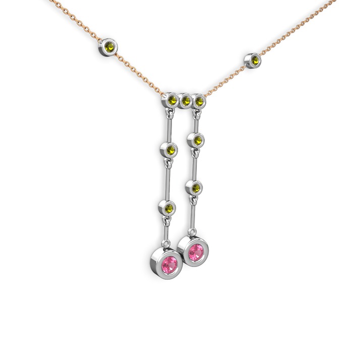 Pembe kuvars ve peridot 925 ayar gümüş kolye (40 cm rose altın rolo zincir)