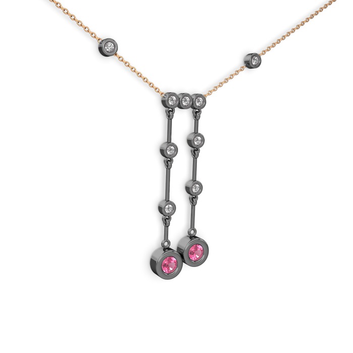 Pembe kuvars ve pırlanta 925 ayar siyah rodyum kaplama gümüş kolye (0.324 karat, 40 cm rose altın rolo zincir)