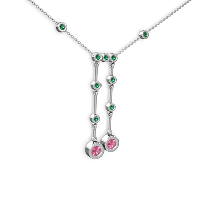 Pembe kuvars ve yeşil kuvars 18 ayar beyaz altın kolye (40 cm beyaz altın rolo zincir)