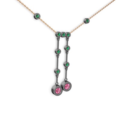 Pembe kuvars ve yeşil kuvars 925 ayar siyah rodyum kaplama gümüş kolye (40 cm rose altın rolo zincir)