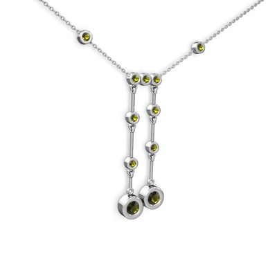 Peridot 14 ayar beyaz altın kolye (40 cm beyaz altın rolo zincir)