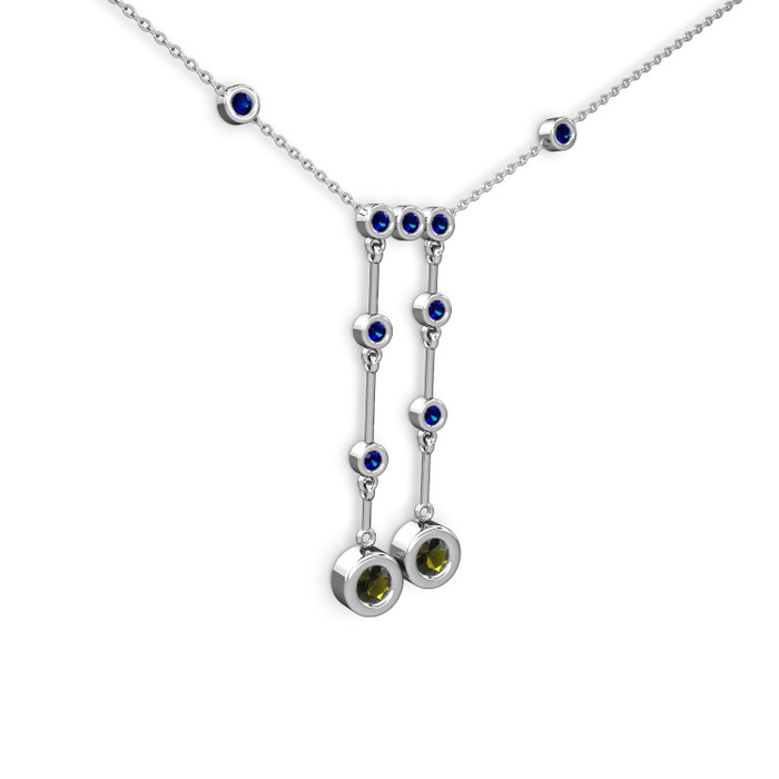 Peridot ve lab safir 8 ayar beyaz altın kolye (40 cm gümüş rolo zincir)