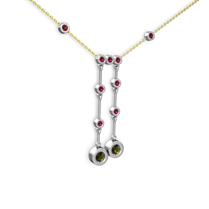Peridot ve rodolit garnet 8 ayar beyaz altın kolye (40 cm altın rolo zincir)