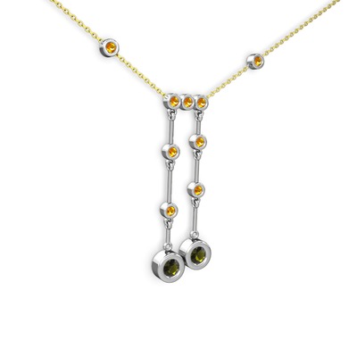 Peridot ve sitrin 14 ayar beyaz altın kolye (40 cm altın rolo zincir)