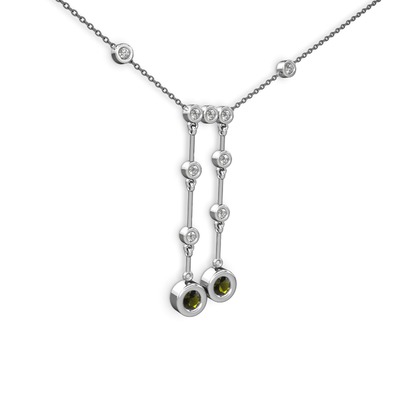 Peridot ve swarovski 925 ayar gümüş kolye (40 cm gümüş rolo zincir)