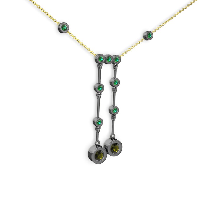 Peridot ve yeşil kuvars 925 ayar siyah rodyum kaplama gümüş kolye (40 cm altın rolo zincir)