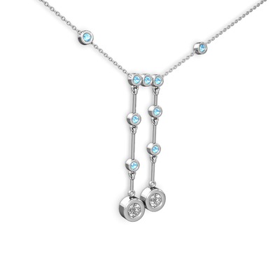 Pırlanta ve akuamarin 8 ayar beyaz altın kolye (0.48 karat, 40 cm gümüş rolo zincir)