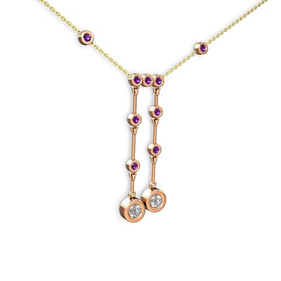 Pırlanta ve ametist 8 ayar rose altın kolye (0.48 karat, 40 cm altın rolo zincir)
