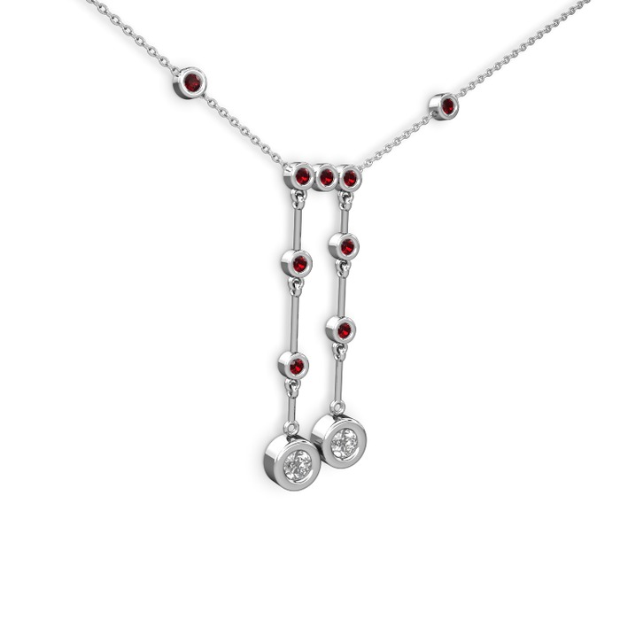 Pırlanta ve garnet 925 ayar gümüş kolye (0.48 karat, 40 cm beyaz altın rolo zincir)