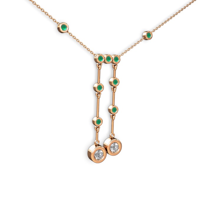 Pırlanta ve kök zümrüt 8 ayar rose altın kolye (0.48 karat, 40 cm rose altın rolo zincir)