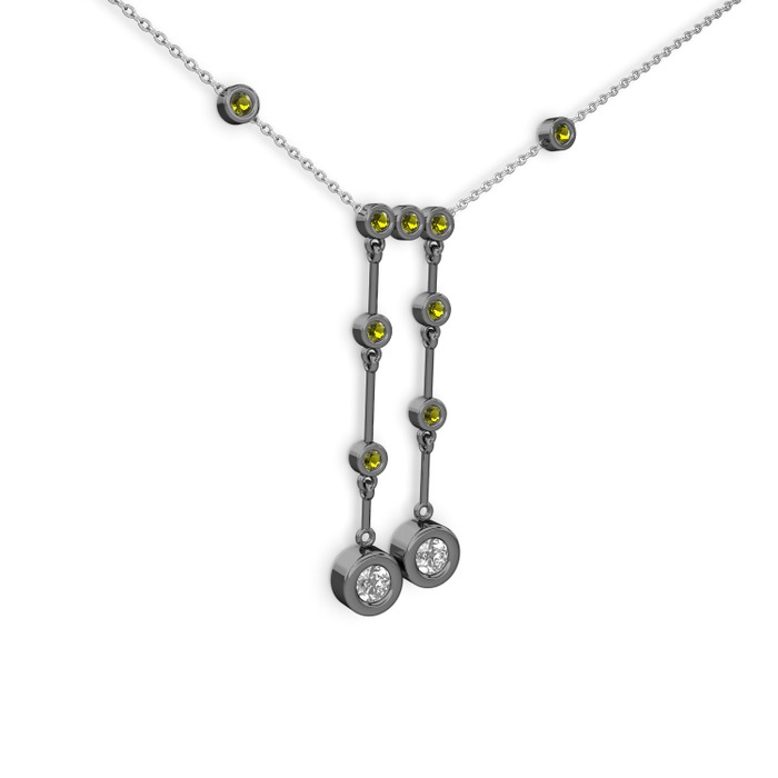 Pırlanta ve peridot 925 ayar siyah rodyum kaplama gümüş kolye (0.48 karat, 40 cm beyaz altın rolo zincir)