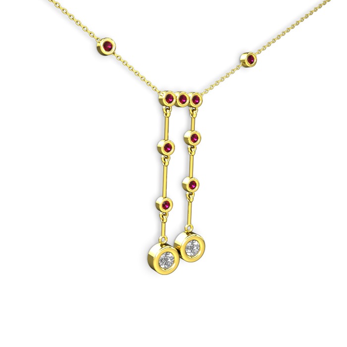 Pırlanta ve rodolit garnet 18 ayar altın kolye (0.48 karat, 40 cm altın rolo zincir)