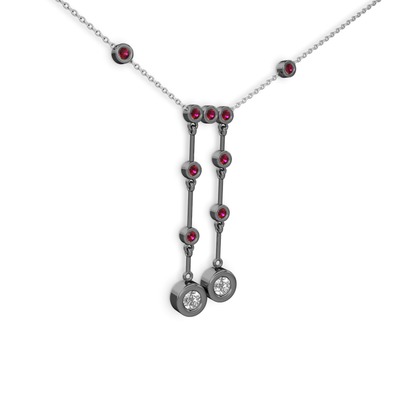 Pırlanta ve rodolit garnet 925 ayar siyah rodyum kaplama gümüş kolye (0.48 karat, 40 cm beyaz altın rolo zincir)