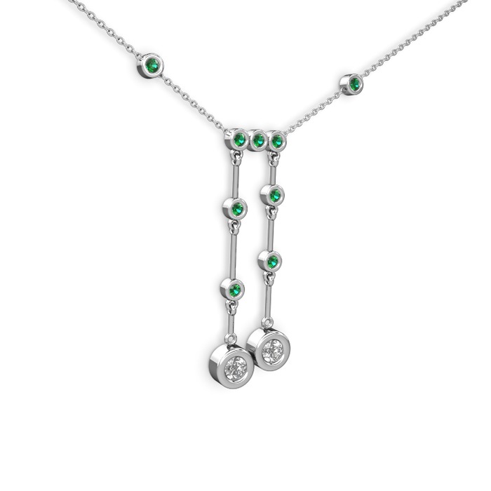 Pırlanta ve yeşil kuvars 14 ayar beyaz altın kolye (0.48 karat, 40 cm gümüş rolo zincir)