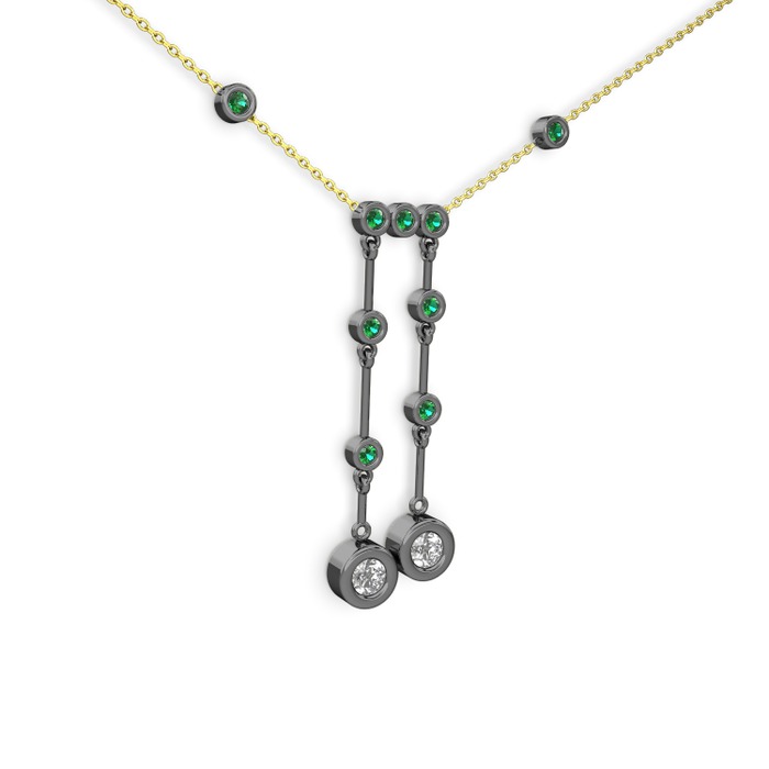 Pırlanta ve yeşil kuvars 925 ayar siyah rodyum kaplama gümüş kolye (0.48 karat, 40 cm altın rolo zincir)