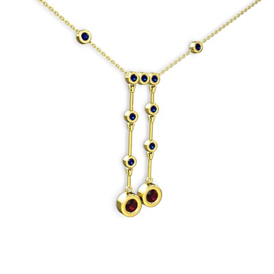 Rodolit garnet ve lab safir 8 ayar altın kolye (40 cm altın rolo zincir)