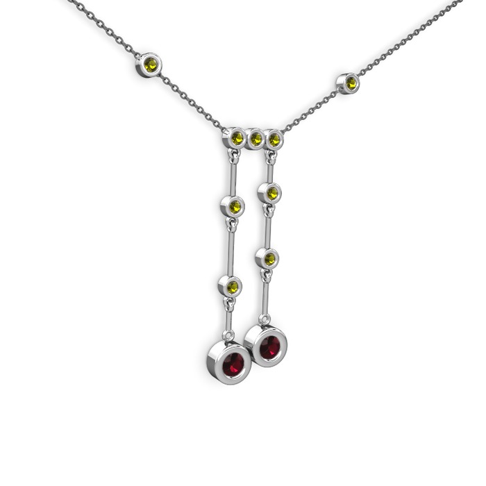 Rodolit garnet ve peridot 18 ayar beyaz altın kolye (40 cm gümüş rolo zincir)