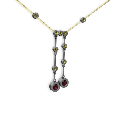 Rodolit garnet ve peridot 925 ayar siyah rodyum kaplama gümüş kolye (40 cm altın rolo zincir)