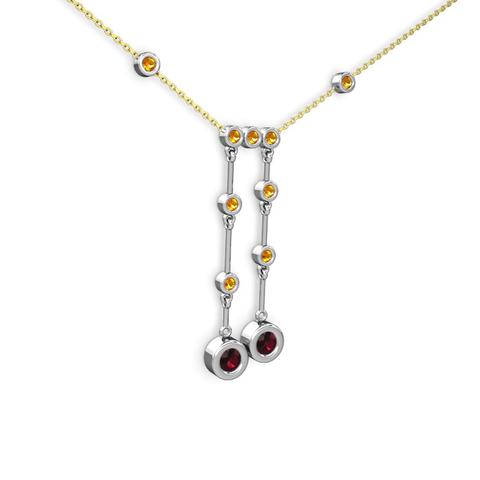 Rodolit garnet ve sitrin 14 ayar beyaz altın kolye (40 cm gümüş rolo zincir)