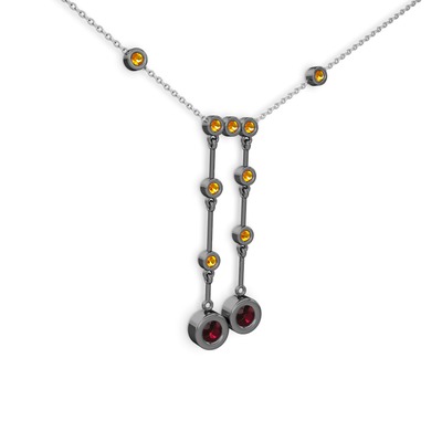 Rodolit garnet ve sitrin 925 ayar siyah rodyum kaplama gümüş kolye (40 cm beyaz altın rolo zincir)