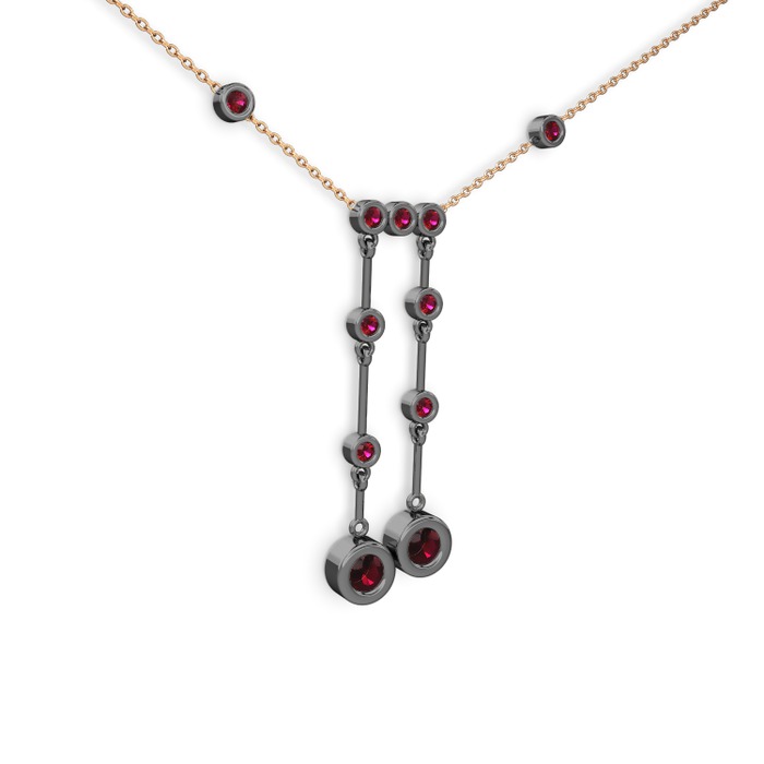 Rodolit garnet 925 ayar siyah rodyum kaplama gümüş kolye (40 cm rose altın rolo zincir)