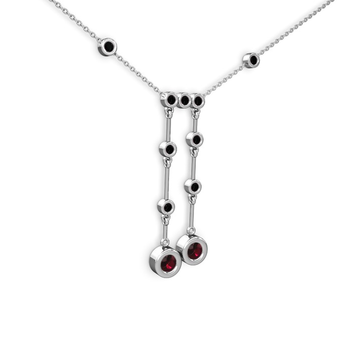 Rodolit garnet ve siyah zirkon 925 ayar gümüş kolye (40 cm beyaz altın rolo zincir)