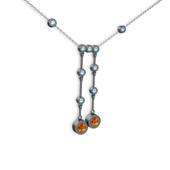 Sitrin ve akuamarin 925 ayar siyah rodyum kaplama gümüş kolye (40 cm beyaz altın rolo zincir)