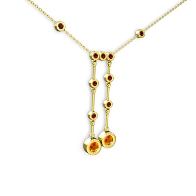 Sitrin ve garnet 8 ayar altın kolye (40 cm altın rolo zincir)