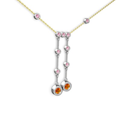 Sitrin ve pembe kuvars 8 ayar beyaz altın kolye (40 cm altın rolo zincir)
