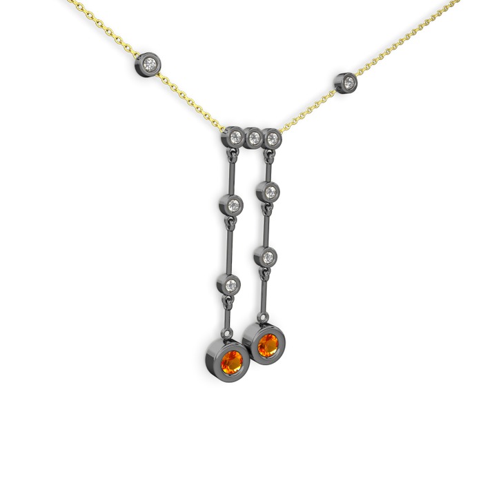 Sitrin ve pırlanta 925 ayar siyah rodyum kaplama gümüş kolye (0.324 karat, 40 cm altın rolo zincir)