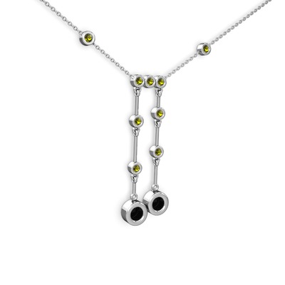 Siyah zirkon ve peridot 925 ayar gümüş kolye (40 cm gümüş rolo zincir)