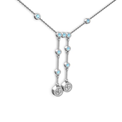 Swarovski ve akuamarin 925 ayar gümüş kolye (40 cm gümüş rolo zincir)