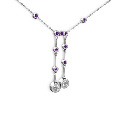 Swarovski ve ametist 14 ayar beyaz altın kolye (40 cm beyaz altın rolo zincir)