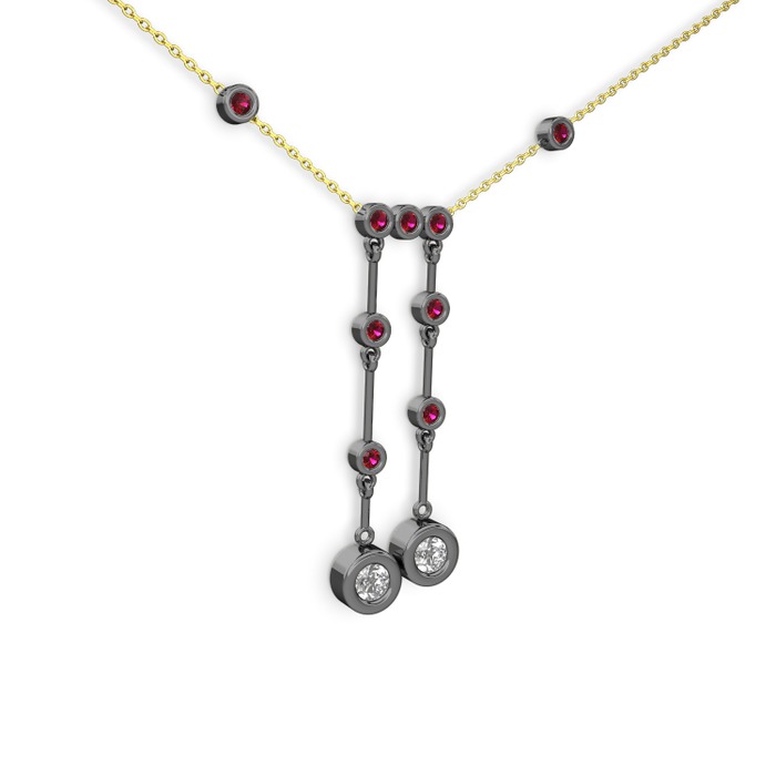 Swarovski ve rodolit garnet 925 ayar siyah rodyum kaplama gümüş kolye (40 cm gümüş rolo zincir)