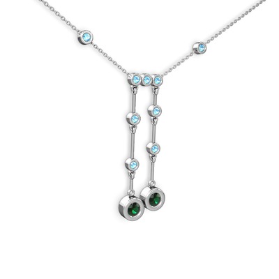 Yeşil kuvars ve akuamarin 14 ayar beyaz altın kolye (40 cm beyaz altın rolo zincir)