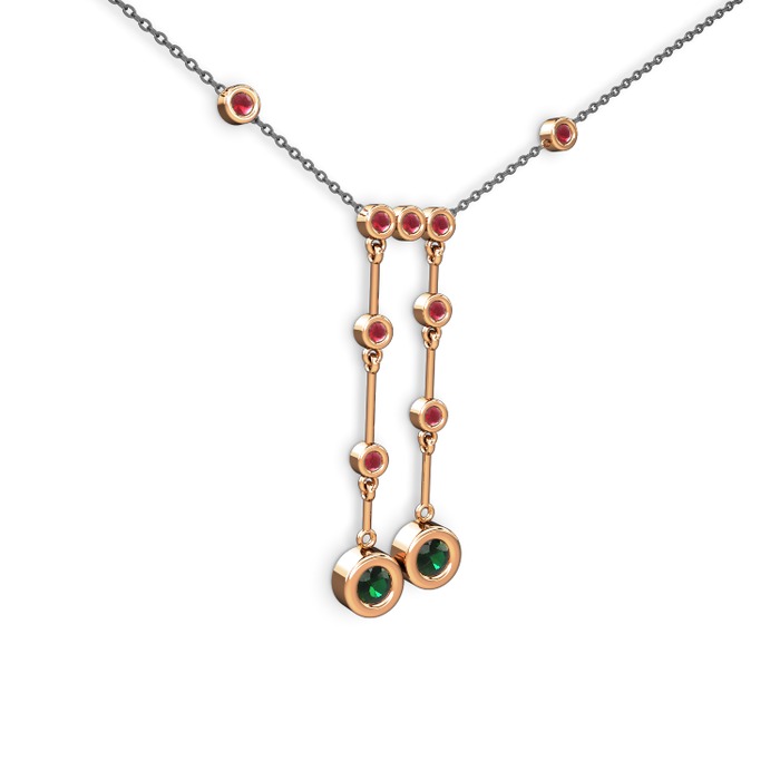 Yeşil kuvars ve kök yakut 18 ayar rose altın kolye (40 cm gümüş rolo zincir)
