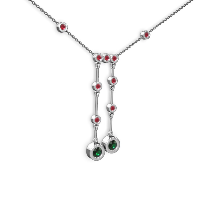 Yeşil kuvars ve kök yakut 8 ayar beyaz altın kolye (40 cm gümüş rolo zincir)