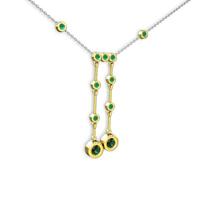 Yeşil kuvars ve kök zümrüt 14 ayar altın kolye (40 cm beyaz altın rolo zincir)