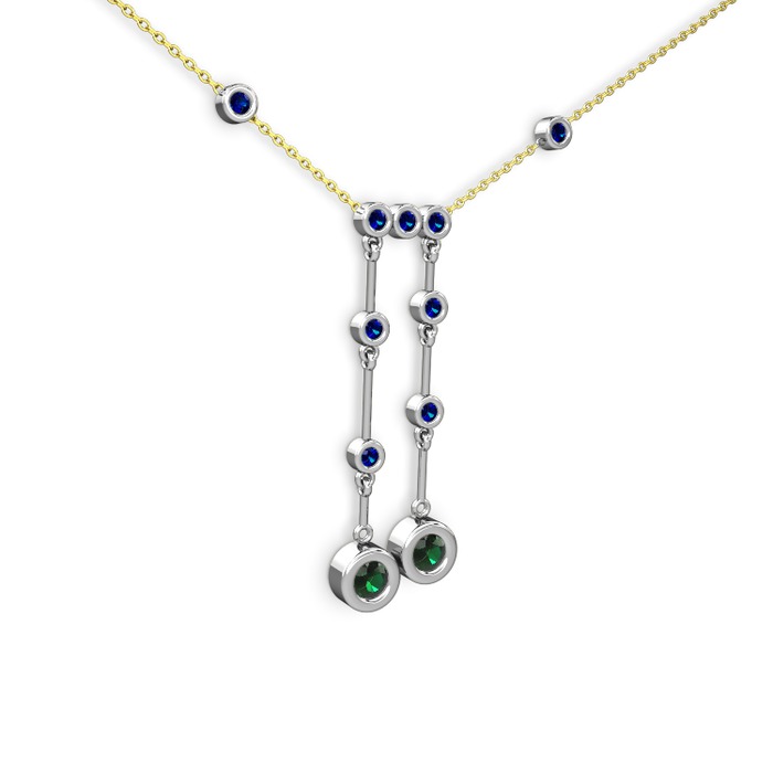 Yeşil kuvars ve lab safir 18 ayar beyaz altın kolye (40 cm altın rolo zincir)