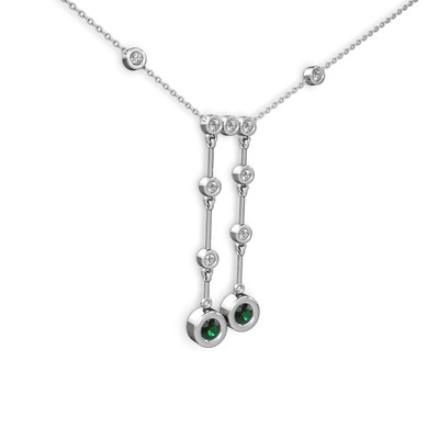 Yeşil kuvars ve pırlanta 18 ayar beyaz altın kolye (0.324 karat, 40 cm beyaz altın rolo zincir)